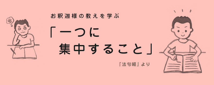 もし、皆さんが「テストでよい点を取る」「部活の試合で勝つ」などの目標を立て、その達成のために何をすべきかと聞かれたら、「あれもしなければ」「これもしなければ」と、たくさんの課題が出てくるのではないでしょうか。だからといって、思いついたこと全てを実行しようものなら、疲れてしまい、長者の息子のように、目標を達成できないことにもなりかねません。長者の息子が疲れてしまった原因は、いろいろな修行に目移りし、あれも、これもと、手を出して、全てを中途半端にしてしまったからです。