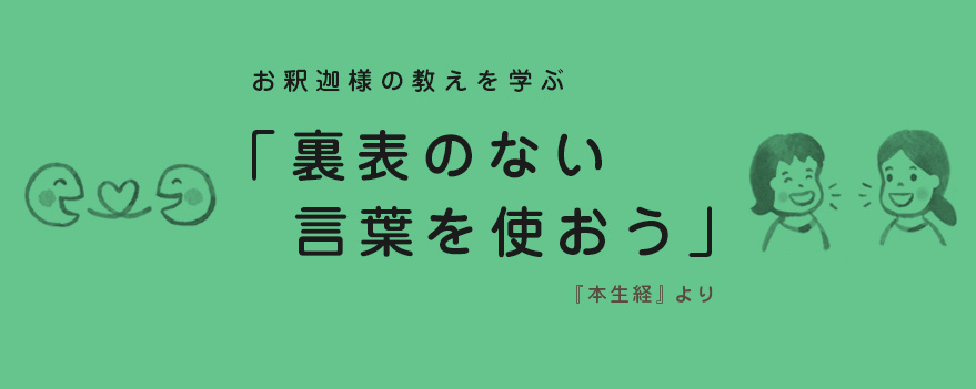 考えるだけならまだしも、たとえば、二人が実際は言ってもいないお互いの悪口を、まるで本当に聞いたかのように、それぞれにこっそり話したなら、口で行う悪になってしまいます。今回は、悪行の一つである「両舌」について学びます。