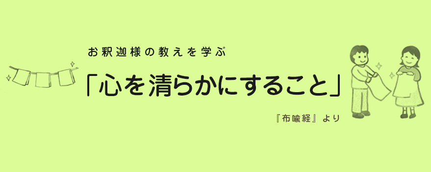 「貪りが心の汚れであると自覚して、それを捨てる努力をしなさい。怒りが心の汚れであると自覚して、それを洗い清めなさい。汚れた布であっても、清らかな水に入れて洗われる時、清らかにして無垢な布となる。それと同じで、心の汚れを洗わなければならない」と説かれました。